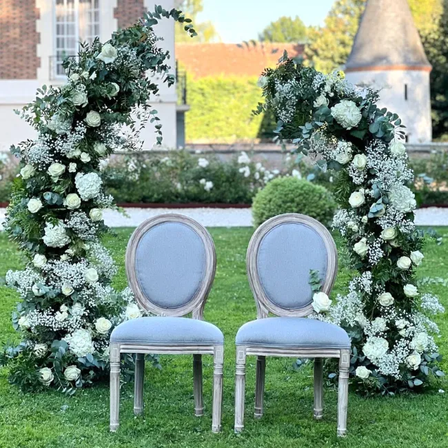 Ces arches asymétriques sont très tendances en décoration de mariage pour créer un rendu unique, moderne et organique. Leur jeu de hauteurs offre une scénographie dynamique, parfaite pour encadrer les mariés ou structurer un espace photo. Elles conviennent idéalement aux couples recherchant une location d’arche originale, capable de s’adapter aussi bien à un thème romantique, jardin, bohème ou naturel.