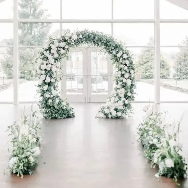 L’arche ronde est un incontournable de la décoration de cérémonie de mariage. Sa forme circulaire symbolise l’union, l’harmonie et l’éternité, ce qui en fait un élément fort et chargé de sens pour une cérémonie laïque, un échange de vœux ou un espace photo.