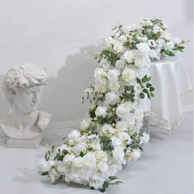 La cascade florale artificielle est idéale pour créer un décor spectaculaire et fluide. Placée sur une arche, un escalier ou une table d’honneur, elle apporte mouvement et élégance à la scénographie.