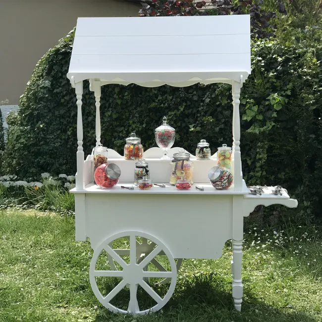 Véritable pièce maîtresse d’un buffet sucré, la charrette candy bar apporte instantanément du charme et de la convivialité à votre réception. Son style à la fois élégant et ludique permet de créer un espace gourmand qui attire naturellement les invités.