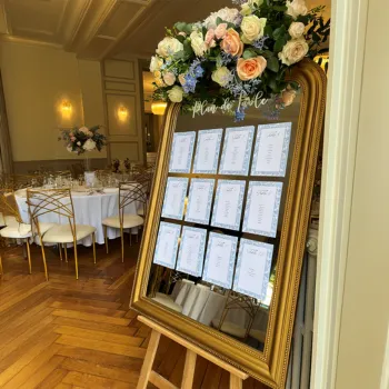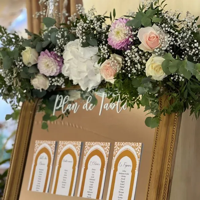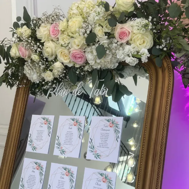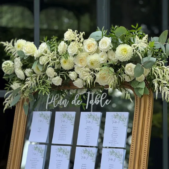 Conçue à partir d’un mélange de fleurs et de feuillages soigneusement sélectionnés, cette composition s’adapte au thème du mariage, aux couleurs du faire-part et à l’ambiance générale de la décoration. Elle apporte une touche florale douce et structurée, parfaite pour un mariage romantique, bohème, champêtre ou chic. Associée à un panneau bois, un cadre doré ou un chevalet, elle renforce la cohérence visuelle de votre scénographie.