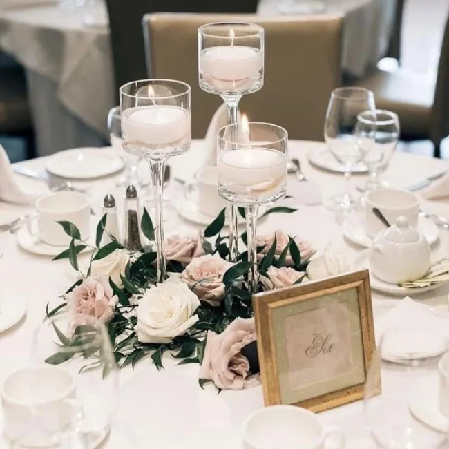 Cette disposition florale mêle feuillage et fleurs délicatement posées pour offrir une création naturelle au rendu très harmonieux. Sa structure aérée permet d’habiller vos tables avec élégance tout en laissant circuler la lumière. Parfaite pour les mariages bohèmes, champêtres ou romantiques, elle crée une ambiance chaleureuse et raffinée sans dominer la décoration existante.