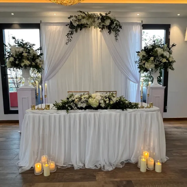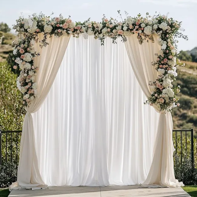 Placés derrière une table d’honneur, un espace cérémonie ou un coin photo, ces rideaux transforment instantanément l’espace en un décor raffiné et lumineux. La lumière douce qui se diffuse à travers le tissu met en valeur les compositions florales, le mobilier et les détails de décoration, tout en offrant un rendu exceptionnel sur les photos et vidéos.