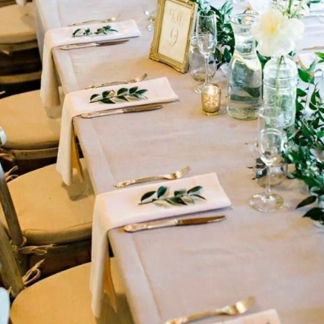 Un brin de feuillage déposé sur chaque serviette apporte une touche naturelle et raffinée à votre table. Simple et esthétique, il complète à merveille toutes les ambiances, bohème, chic, romantique ou minimaliste, en ajoutant une note végétale subtile et harmonieuse.