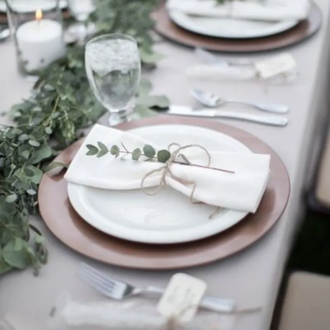 La ficelle naturelle crée un rendu simple et chaleureux, idéal pour les mariages bohème, champêtre ou épurés. Enveloppée autour de la serviette, elle met discrètement en valeur vos menus, brins de feuillage ou petits accessoires décoratifs.