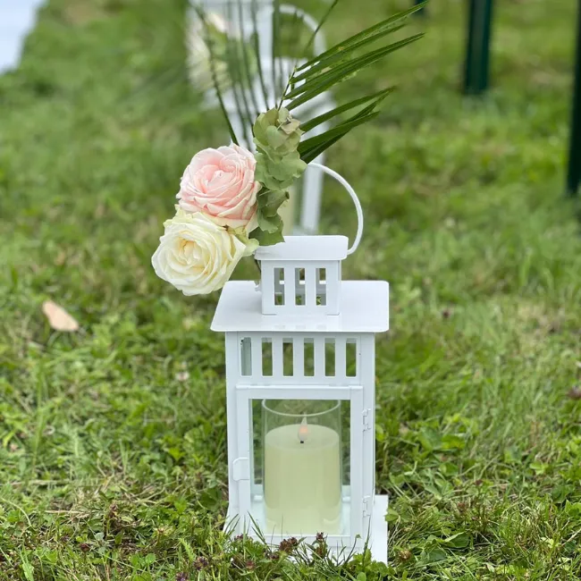 La lanterne blanche est un élément incontournable pour créer une ambiance douce et romantique lors de votre cérémonie. Placée le long de l’allée, sur un pupitre ou près de l’arche, elle apporte une lumière chaleureuse et élégante. Très appréciée dans les thèmes bohèmes, champêtres ou classiques, elle renforce l’atmosphère intime propre aux cérémonies de mariage.