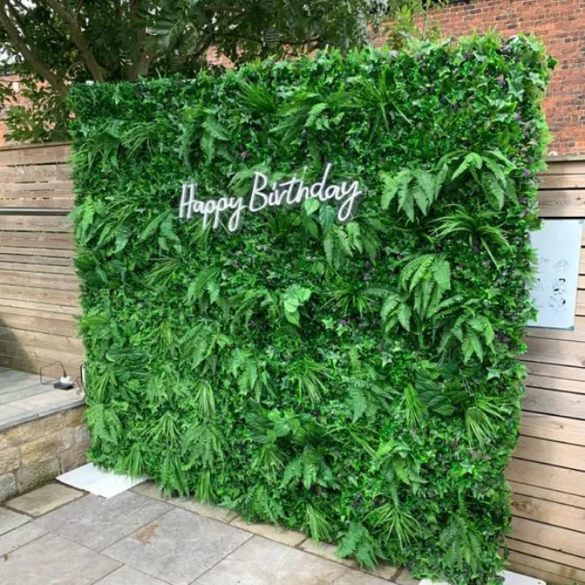 Inspiré de la nature, le mur végétal apporte une touche fraîche et contemporaine à votre décoration événementielle. Son feuillage dense crée un décor immersif, idéal pour structurer un espace, habiller un fond de salle ou servir de backdrop photo.