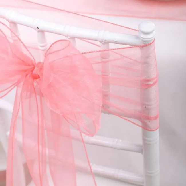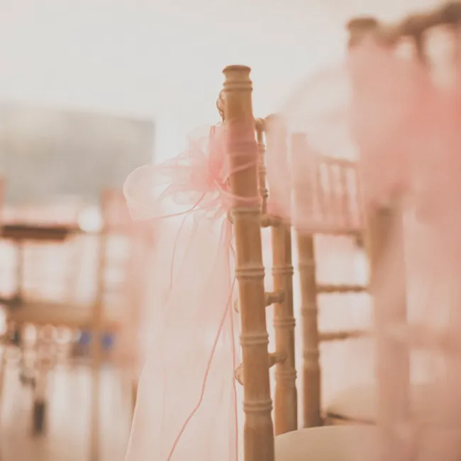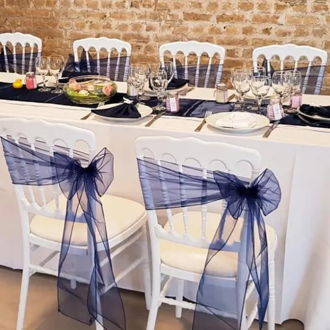 Le nœud en organza apporte une touche aérienne et élégante à vos chaises, parfait pour sublimer une cérémonie ou une réception de mariage.