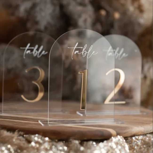 Sobre et intemporel, le numéro doré est un grand classique de la décoration de table de mariage. Sa finition brillante apporte une note élégante tout en assurant une excellente lisibilité. Il s’adapte facilement à différents styles, du mariage chic au décor plus minimaliste.