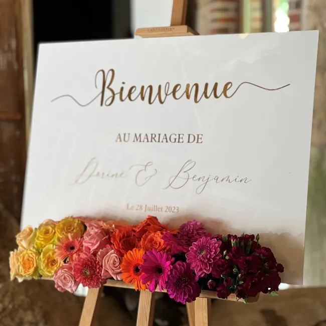 Votre panneau est personnalisé selon vos envies : typographies, couleurs, iconographie… Tout est conçu sur mesure pour refléter votre univers visuel.