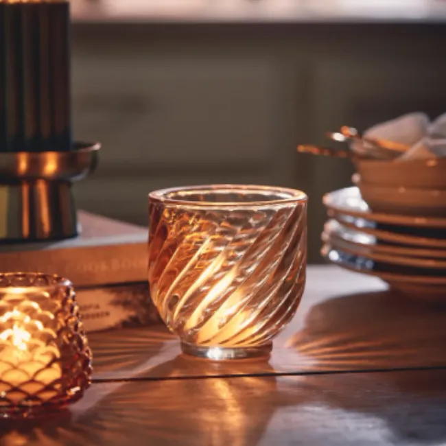 Ce photophore ambré diffuse une lumière chaude et enveloppante grâce à sa teinte dorée et son relief délicat. Il est parfait pour une décoration de table chaleureuse et intimiste, notamment pour les mariages automnaux, les ambiances naturelles ou les thèmes élégants.