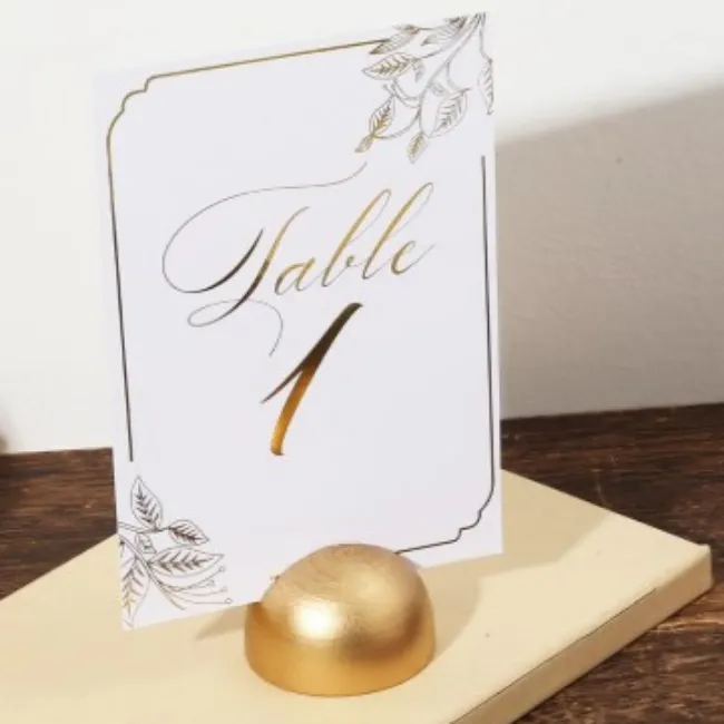 Discret mais résolument chic, le porte-carte doré est l’accessoire idéal pour mettre en valeur vos numéros de table, menus ou cartes de place avec élégance. Sa finition dorée apporte une touche lumineuse et raffinée à la décoration de table, tout en s’intégrant harmonieusement dans des univers chics, modernes, classiques ou bohèmes.