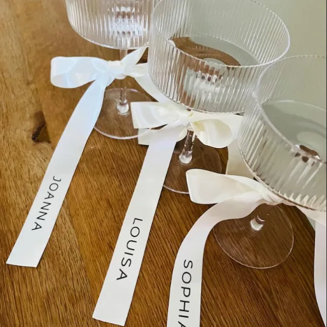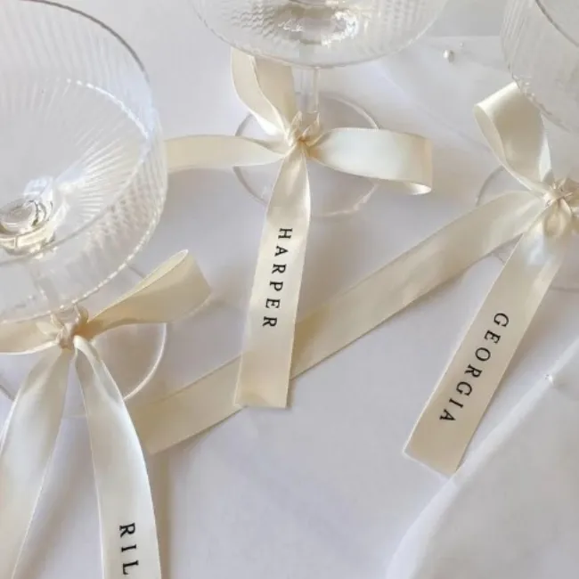 Le ruban personnalisé est un détail décoratif qui fait toute la différence. Noué autour d’un verre, d’une serviette ou d’un menu, il apporte une touche délicate et raffinée à la table. Disponible en plusieurs coloris, il permet de renforcer la palette du mariage et d’ajouter une finition élégante à l’ensemble de la décoration.