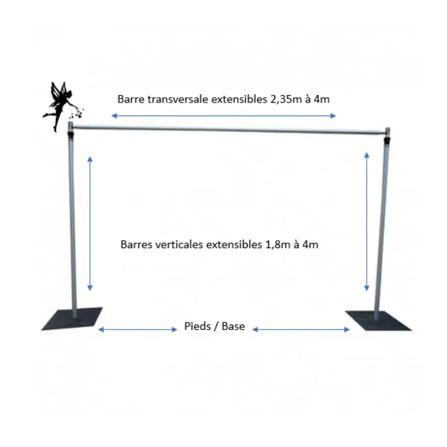 Pensée pour la scénographie événementielle, la structure autoportante permet de créer des décors personnalisés. Elle accueille rideaux, éléments floraux ou lumières afin de structurer un fond de salle ou un espace photo.