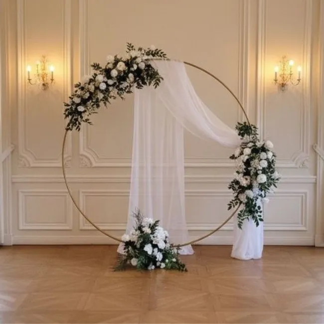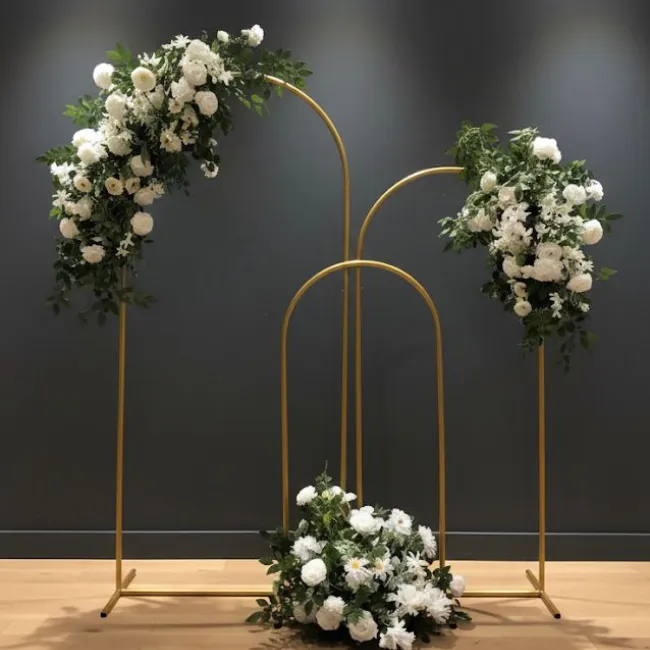Composé de trois éléments floraux coordonnés, ce trio de compositions permet de créer une décoration équilibrée et rythmée. Idéal pour encadrer une arche, une table d’honneur ou un espace photo, il apporte cohérence et élégance à l’ensemble du décor.